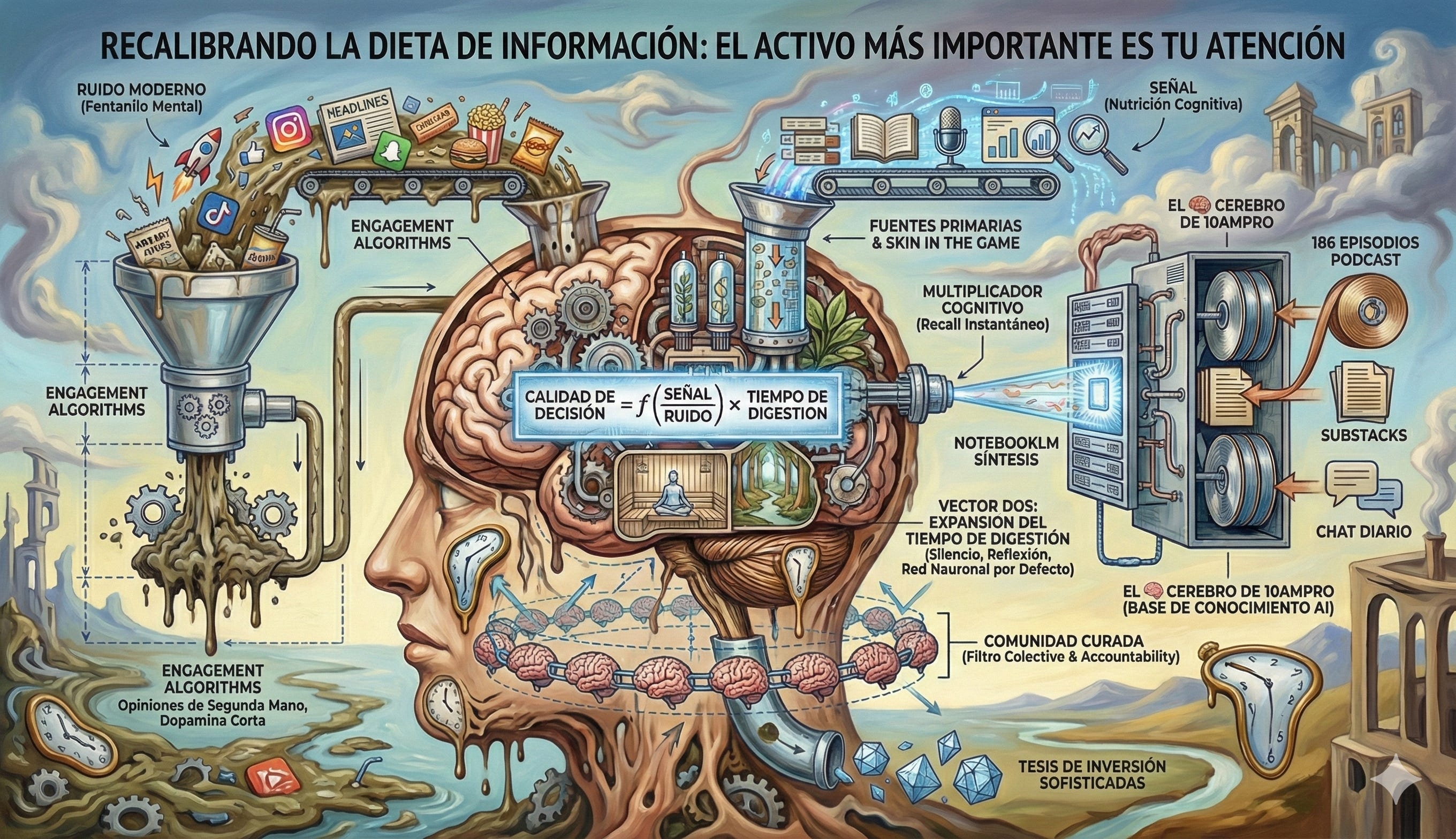 Cada enero, mientras la mayoría de las personas se enfoca en resoluciones relacionadas con el cuerpo físico, en 10AMPRO la tradición es diferente. El ritual consiste en auditar y recalibrar los flujos de información que alimentan las decisiones de inversión durante los próximos doce meses. Esta práctica parte de una premisa que pocos inversionistas retail internalizan: la calidad de las decisiones financieras es un reflejo directo de la calidad de la información que se consume.